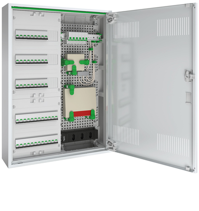 Multimedia-Feldverteiler, um den vielfältigen Anforderungen des modernen Wohnbaus, inklusive der Vernetzung aller technischen Funktionen, gerecht zu werden.