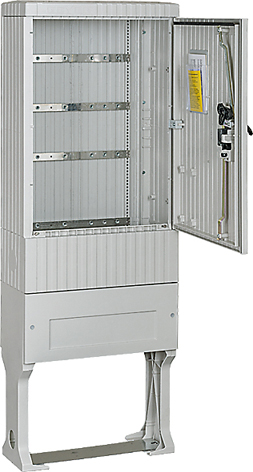 Kabelverteilersäulen und -schränke sind in unterschiedlichen Größen verfügbar. Die Säulen sind mit einem Sammelschienensystem bestückt, die Schränke sind mit Montageplatte oder mit Sammelschienensystem erhältlich.