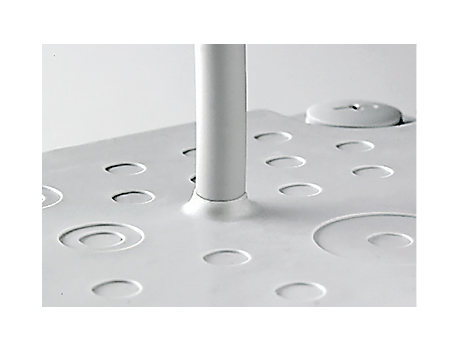 Für bessere Standfestigkeit auf Kies- und Sandböden sorgt ein zusätzlicher Bodenrost aus Stahlblech – auch mit Justierstäben erhältlich.