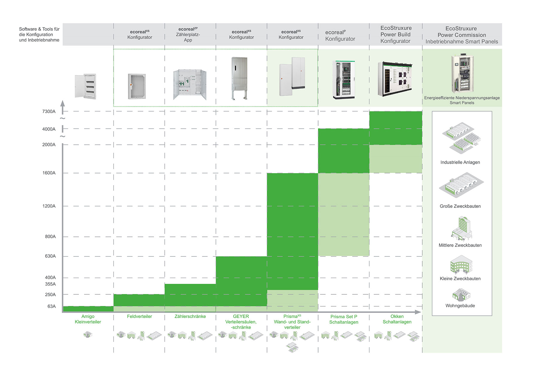 Ob Ein- und Mehrfamilienhaus-Zählerschränke, Wandleranlagen für den Zweckbau, Telekommunikationsfelder, Überspannungsschutz im Vorzählerbereich und Anschlusstechnik oder Verteilerbau mit Einzelteilen, Komplettbaugruppen und vormontierten Einbaufeldern. Für jeden Praxisfall bieten wir durch das System eine serienmäßige und ab Zentrallager verfügbare Lösung. Ganzheitliche, vernetzte und kundenspezifische Energieverteilungssysteme aus einer Hand bieten echte Mehrwerte für alle Kunden des Team Schneider Electric.